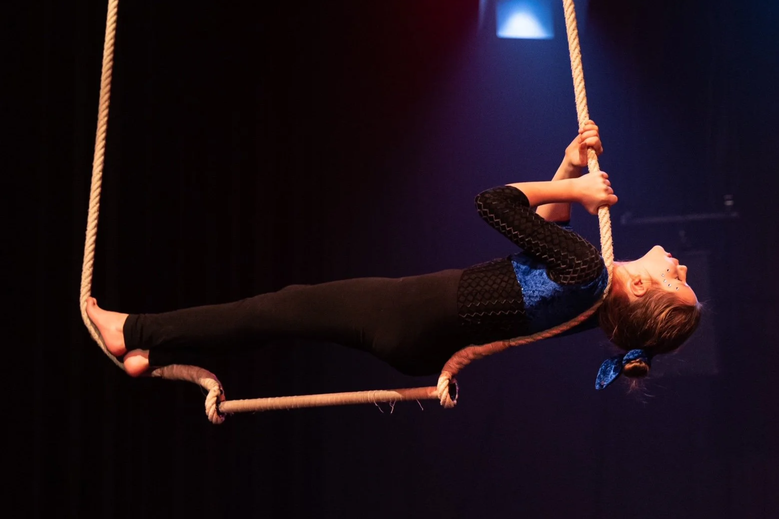 Temppuja, liikesarjoja, koreografiaa ja voimaharjoitteita ilmassa. Lajeina mm. kangas, trapetsi, köysi ja ilmarengas. Panostetaan paljon perustekniikkaan, oppilailla on mahdollisuus valita itseä kiinnostava väline. Huolimatta omasta ilma-akrobatialajista perusvoimaharjoitteita kannattaa tehdä useammalla välineellä. Ilma-akrobatiatunneille otetaan vain oppilaita, jotka ovat jo käyneet aikaisemmin akrobatiatunneilla tai joilla on kokemusta jostain muusta vartalon hallintaa kehittävästä harrastuksesta. Rinnalle suosittelemme aina permantoakrobatia- tms. tunteja joko meillä tai muualla.